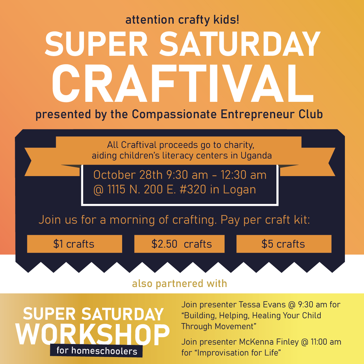 Over the three years plus we’ve been in existence, we have sold at craft booths, organized concerts and online auctions, partnered with businesses to have a movie night and ski night dedicated to our cause, gathered books, clothing and games, led a service room putting together literacy supplies, gathered for game nights, organized a craftival, taught classes and more.